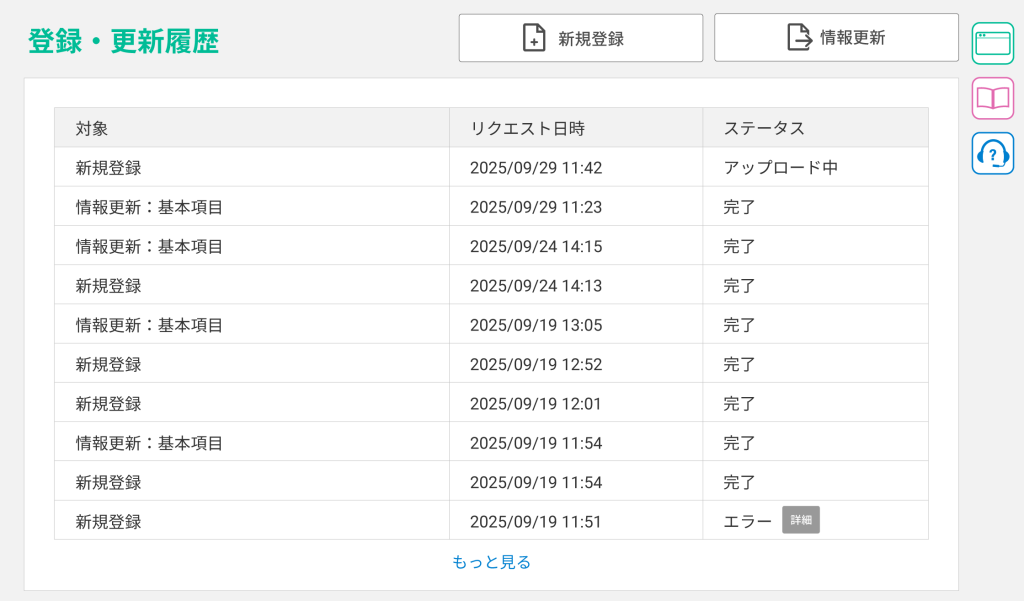 CSVファイルの取り込み完了をメールや登録・更新履歴で確認できます