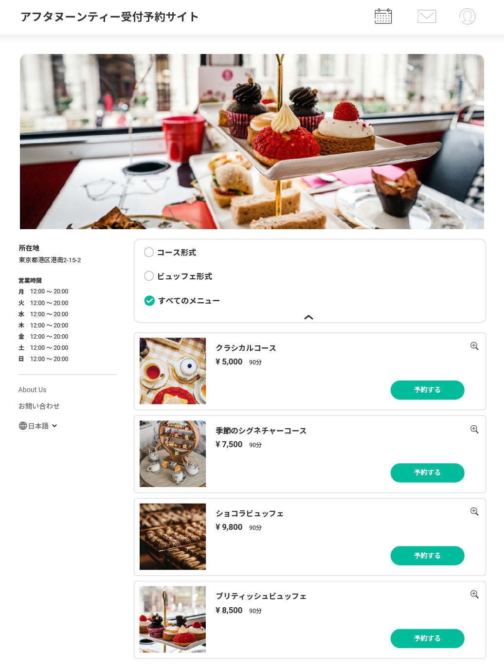RESERVA予約は、アフタヌーンティー、ディナーショーをはじめとするイベント、サービス予約に対応している予約管理システムです。インターネット上で24時間いつでも予約を受け付けることができます。お客さまの利便性と管理者さまの予約受付にかかわる煩雑な業務を大幅に改善します。