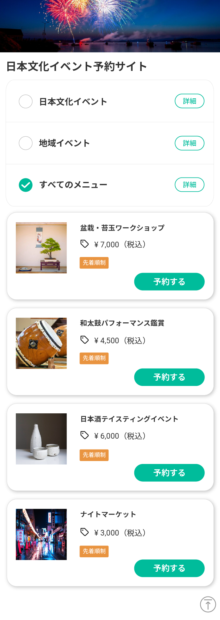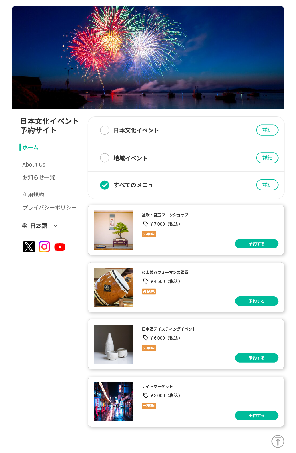 RESERVA予約は、伝統行事・祭り、フード・グルメイベント、ポップカルチャーイベントをはじめとするインバウンド向けの観光イベント予約に対応している多言語予約システムです。外国人向けのバイリンガル対応が可能なイベント予約システムで、インターネット上で24時間いつでも参加・チケット予約を受け付けることができます。参加者の利便性と管理者の予約にかかわる煩雑な業務を大幅に改善します。