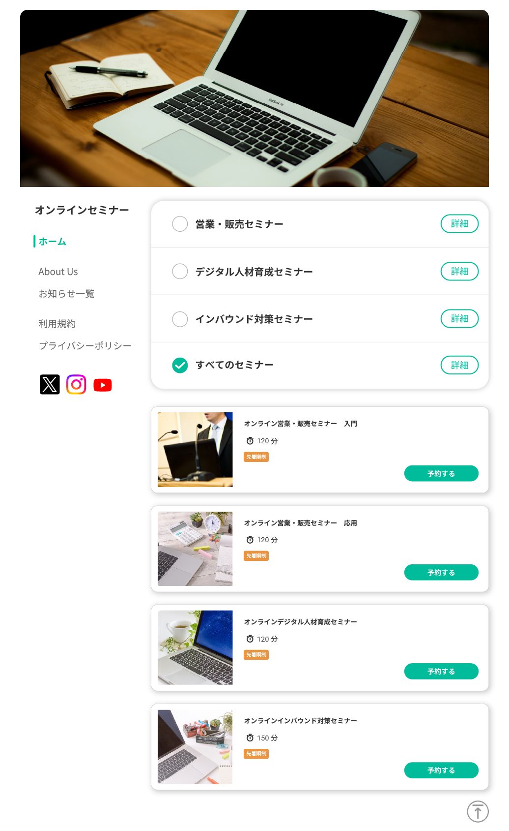 RESERVA予約は、オンラインセミナー、オンライン講座をはじめとする予約に対応している予約管理システムです。インターネット上で24時間いつでも予約を受け付けることができます。Zoom連携機能を活用することで、スムーズにオンラインセミナーを開催することが可能です。参加者の利便性と管理者の予約にかかわる煩雑な業務を大幅に改善します。