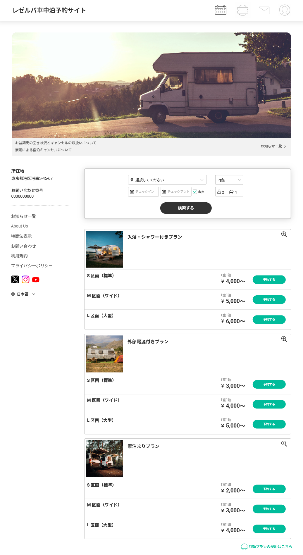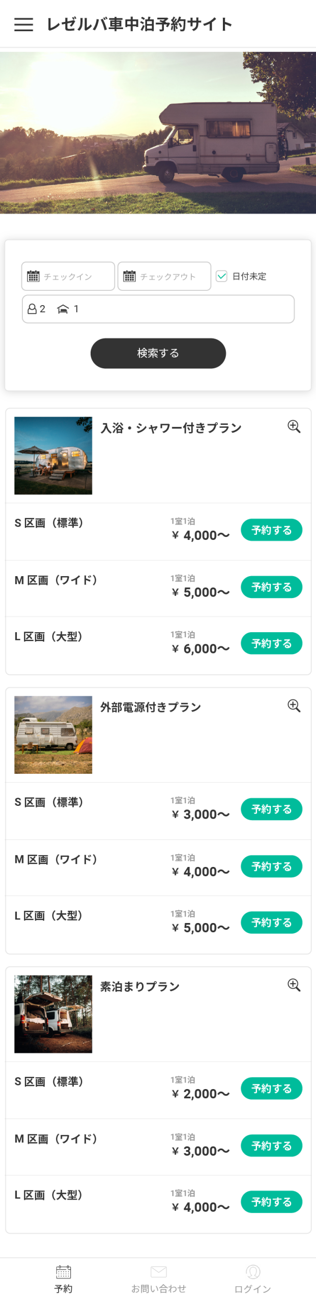 RESERVA予約は、車中泊、キャンプ、グランピングをはじめとするアウトドア予約に対応している予約管理システムです。インターネット上で24時間いつでも予約を受け付けることができます。宿泊者様の利便性と管理者の予約にかかわる煩雑な業務を大幅に改善します。